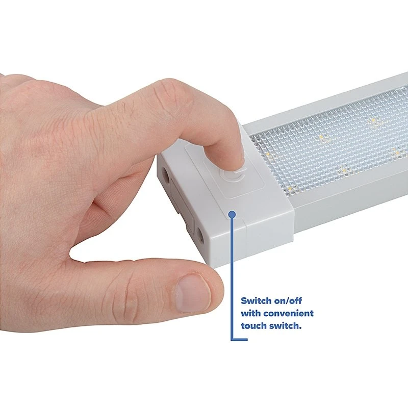 This linear LED light bar emits bright, smooth white light, ideal for both decorative and functional applications. Its sleek, slim design is perfect for installation in small or out-of-sight spaces. Available in 3 different lengths; 10”, 18”, or 26” and with either natural or warm light. Switch on/off with a convenient touch control. This fixture features removable end pieces for easy installation.