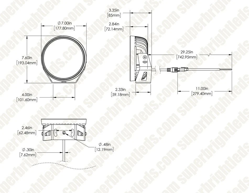 OR series 7″ LED Work Light projects a powerful beam with high speed visibility and maximum forward distance. Supplement wider beam driving lights and illuminate farther down a trail or road with this long-range spot light. It throws a narrow 4° beam pattern over half a mile, to penetrate dark off-road or rough work environments. Heavy duty construction includes die-cast aluminum housing and polycarbonate lens, sealed against moisture and impact-resistant. Mounting brackets and hardware are included for quick, secure installation on powersports, security and law enforcement vehicles, trucks, boats, and more.