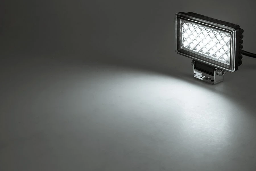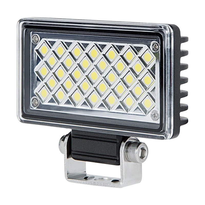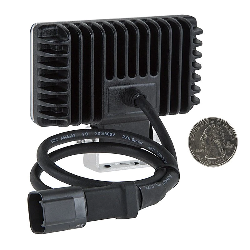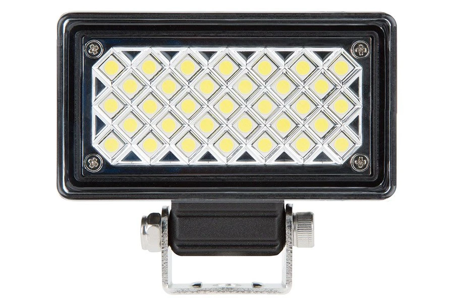 With a 120° flood beam pattern this off-road work light provides maximum area illumination. The rectangular design is built from heavy-duty aluminum with a plastic lens that protects the internal components from dust and water. An integral heat sink keeps the LEDs running cool for longer life. Includes an adjustable stainless steel mounting bracket.