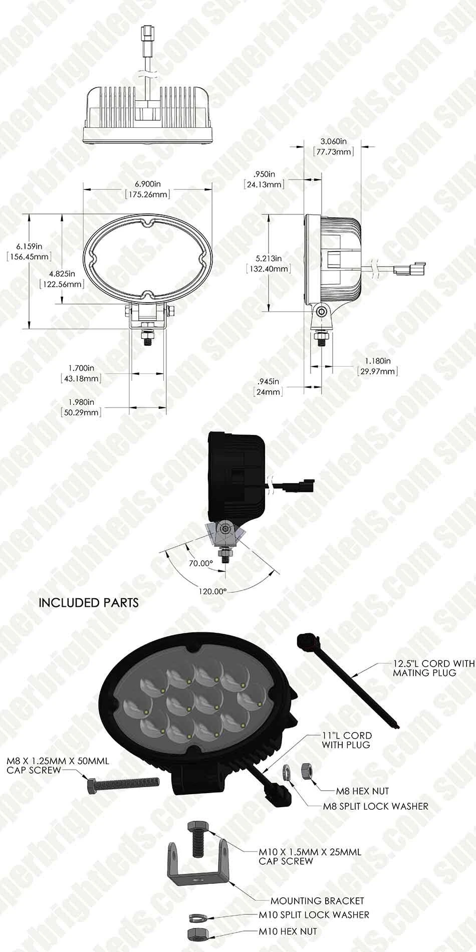 The Survey Series is a cost-effective line of powerful and versatile LED POD Lights. This multi-use light emits 2,100 raw lumens in either a focused 30° spot beam for long-range illumination or a wider 60° flood beam pattern for area illumination. The sealed polycarbonate lens and aluminum housing with the integral heat sinks protect the internal components from extreme weather. The 5.75” oval light mounts easily with an adjustable stainless steel mounting bracket to off-road vehicles, ATV’s, and agricultural vehicles.