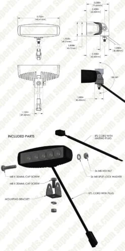 The Survey Series is a cost-effective line of powerful and versatile LED POD Lights. This off-road LED work light ha a 45° flood beam pattern for area illumination. Built with a rugged polycarbonate lens and aluminum housing with an integral heat sink that protects the internal components from extreme weather. The 6″ rectangular work light Includes an adjustable stainless steel mounting bracket.
