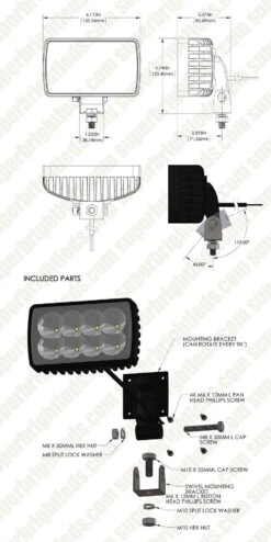 The UTE Series LED Pod Lights feature heavy-duty construction with a classic lens design for uniform light distribution. . Producing 1,800 raw lumens of cool white light, this off-road LED pod light provides illumination for trucks, ATVs, and boats. Available as a focused 30° spot light for long-range illumination or a wide 60° flood beam pattern for complete area illumination. The 6-inch rectangular work light is built from heavy-duty aluminum with a polycarbonate lens that protects the internal components from extreme weather conditions. Mounts in vertical or horizontal positions with it’s adjustable stainless steel mounting bracket.