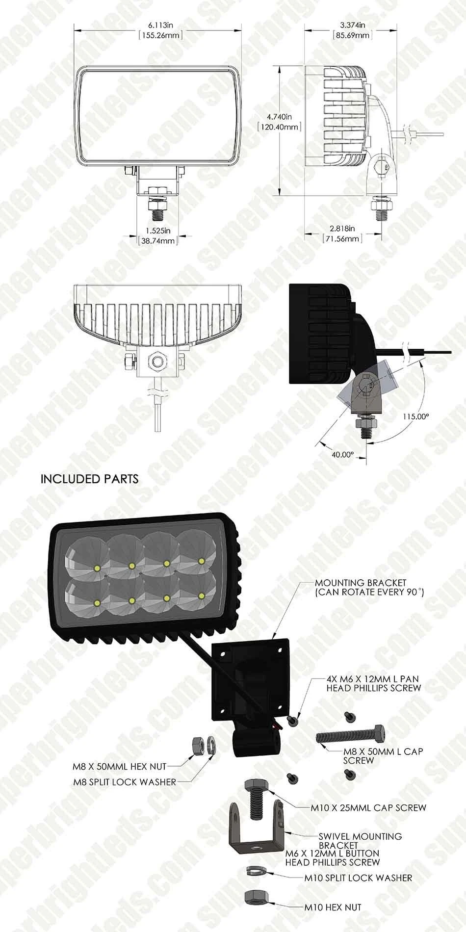 - Installation hardware included