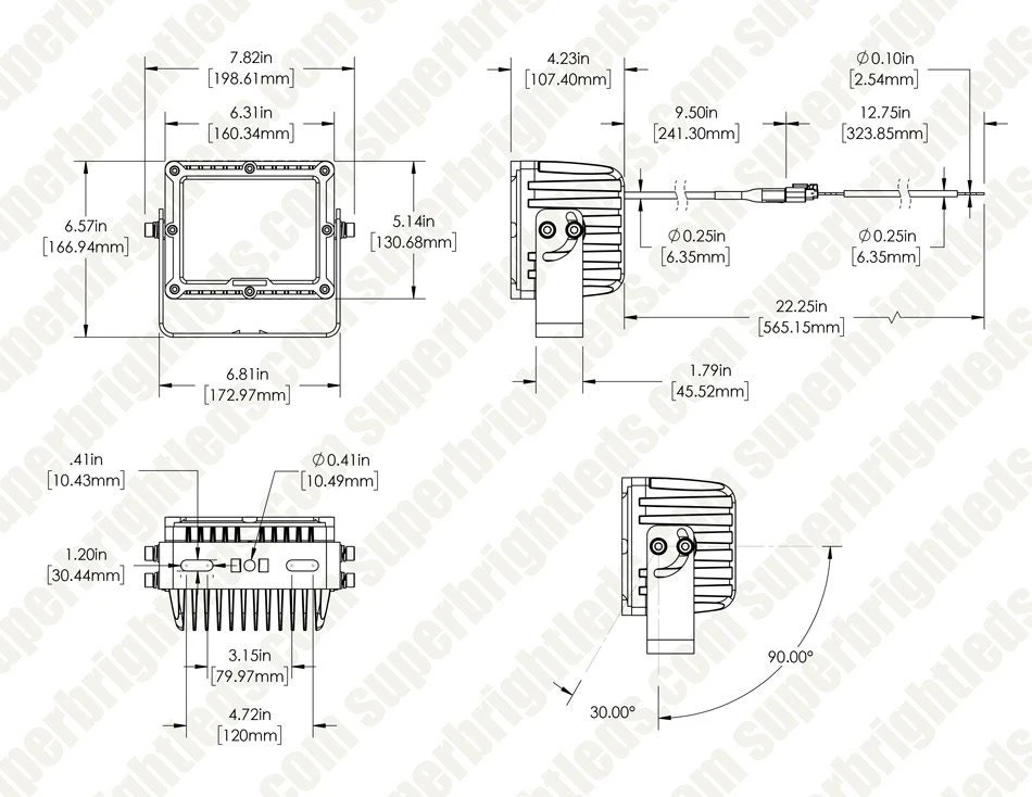 Off-road LED work / spot light produces a 30° spot beam pattern at 9.400 lumens. IP67 rated waterproof and shock-resistant aluminum housing to protect against extreme weather conditions. The integrated heat sink allows LEDs to run cool, which leads to a longer life span. Mounts easily on off-road vehicles, trucks, and marine vehicles with the universal stainless steel adjustable U bracket.