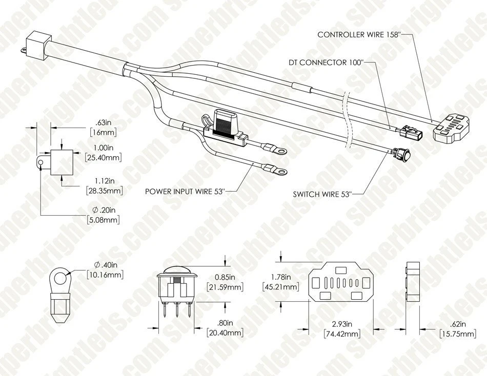• Wiring harness included (controller, on/off rocker switch, relay, in-line fuse)