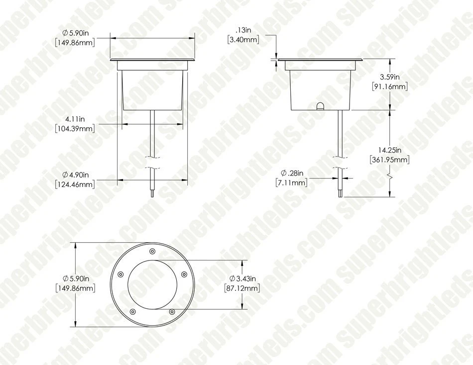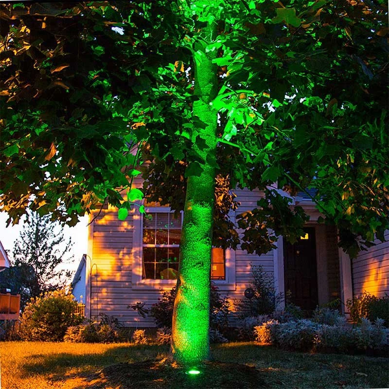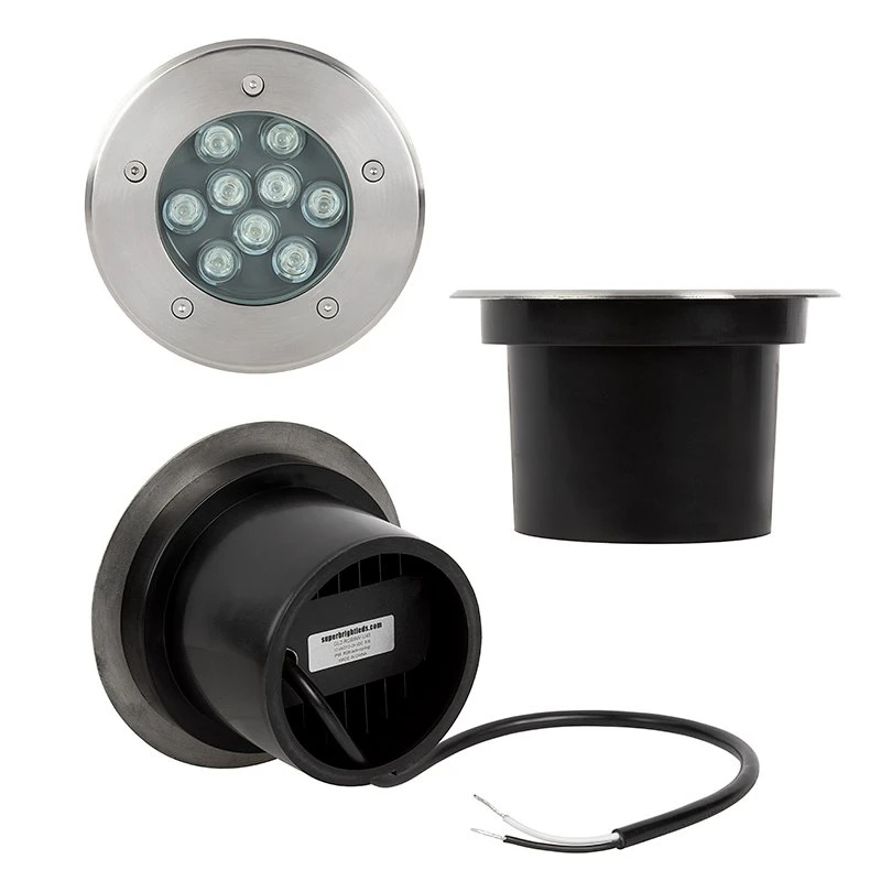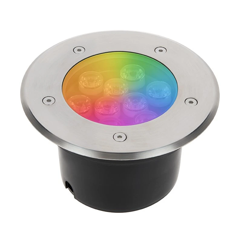Heavy duty and sealed against moisture, the GL2 series Well Light can be installed in-ground for landscape uplighting. Equipped with RGB LEDs, this fixture auto-cycles through colors to provide festive accent or highlight to architecture, trees, fountains, and more. with a glass lens and stainless steel trim, the durable light can be powered using 12 VAC or 12-24 VDC with included pigtail connector.