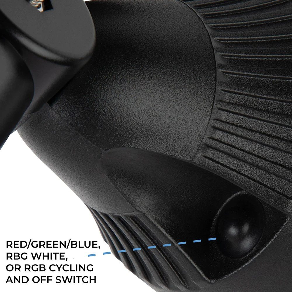 - 5-function switch: Red, Green, Blue, RGB white, automatic RGB color cycling