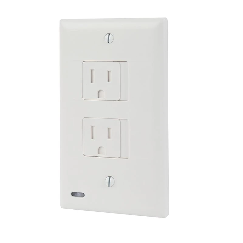 Install the SafeLight Outlet Cover Plate by SnapPower to increase visibility and safety. The cover plate is designed with sliding covers that snap over the outlet when a plug is removed, creating a child-proof safe outlet. The easily-installable outlet cover is compatible with decorative-style duplex outlets and is designed to fit a wide range of home decor. The outlet is built with an integrated LED light bar powered by the electrical copper contacts on the back of the cover plate, no batteries or wires required. To install, push the electrical contact onto the outlet screw terminal with the light bar facing the same direction as the ground prongs on the outlet. An integrated light sensor automatically turns the LEDs on and off. Customize the LED brightness using the brightness switch, selecting between bright, dim, and off. The cover plate conveniently leaves electrical outlets free to use. Not compatible with GFCI outlets.