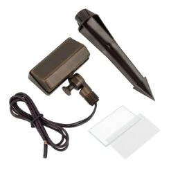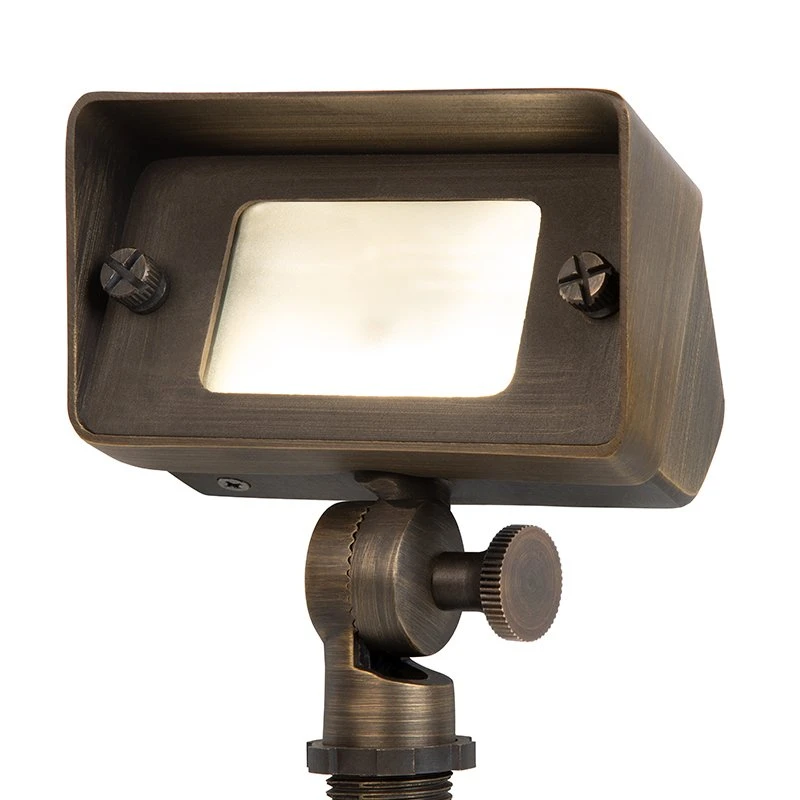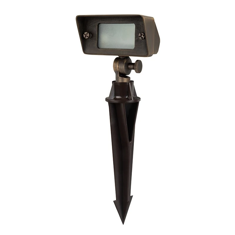 This durable landscape flood light is constructed of solid brass with a bronze finish. It includes a G4 LED bulb that emits 390 lumens of natural or warm white light in a wide beam pattern. The LED-ready flood light is equipped with a glare shield and can be rotated 180° for light where it’s needed. Because this landscape light operates at 12V AC/DC, a low-voltage transformer is required. A 9″ PVC ground stake is included. The landscape flood light is great for gardens, subdivision signs, architectural lighting, and more.