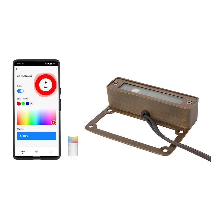 The solid cast brass hardscape light is a durable, low-profile 4″ LED-ready landscape fixture that fits various outdoor applications. Bundles include an RGB and 2700K G4 smart bulb with smartphone and Wi-Fi compatibility. Download the Smart Life app on a smart device to select between a range of RGB colors, tunable whites, or pre-programmed modes. Connect the smart bulb to Alexa or Google Assistant for voice command control. The solid brass construction is corrosion-resistant with an architectural bronze design. The light is reinforced with silicone around the lens to protect the internal elements from water intrusion. Mount to stone, rock walls, or steps using the attached mounting bracket and included stainless steel hardware. Ideal for mounting under cap stones on retaining walls. Available as a fixture only or with an optional plug-and-play bi-pin G4 smart bulb included.