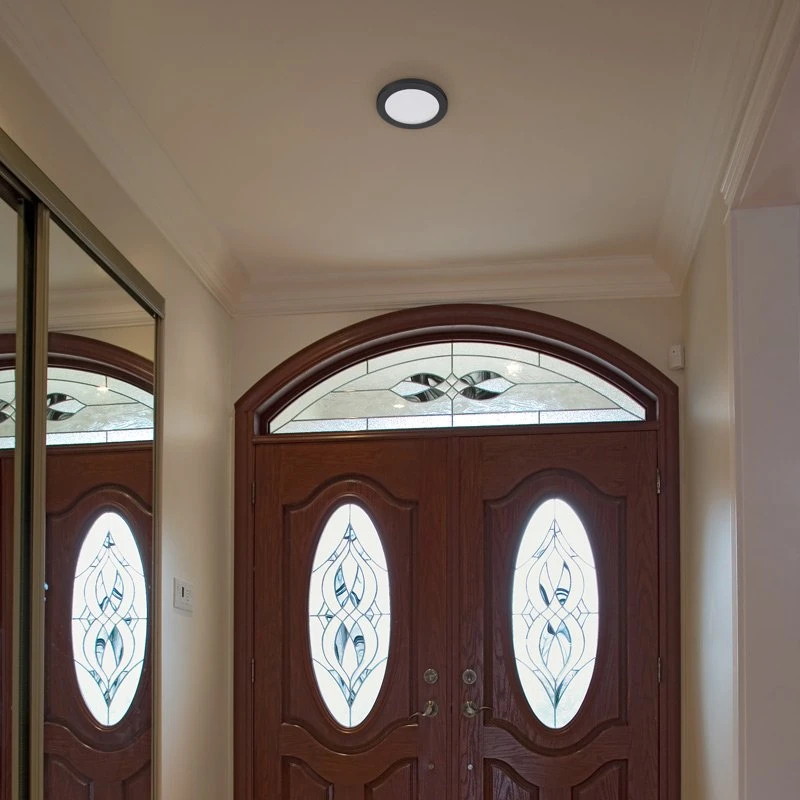 TCP’s 7″ LED Slim Flush Mount Fixtures are perfect for new construction or retrofit projects. They are color selectable and come with a matte black magnetic trim ring. The field-selectable CCT allows you to select the color temperature that best suits your needs. The frosted lens diffuses the 120° beam angle, producing a uniform light distribution. Install directly to a junction box or within a 5″ or 6″ recessed can. IC Rated for contact with insulation.