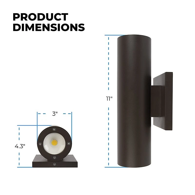 The 11” up/down wall sconce features a low profile and contemporary design suitable for residential and commercial applications. ETL Listed for wet locations, install the fixture outdoors for entryway and building exterior lighting. The up/down design provides an accent wherever installed, paired with the wide 120° beam angle the fixture provides optimal lighting for perimeters and wall washing.